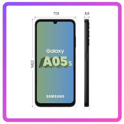 Galaxy A05s با ابعاد 168 در 77.8 در 8.8 میلیمتر و وزن 194 گرم، طراحی ساده و کاربرپسندی دارد. بدنه پلاستیکی مات آن در رنگهای مشکی، نقرهای، سبز روشن و بنفش عرضه میشود که علاوه بر زیبایی، از جذب اثر انگشت جلوگیری میکند. حسگر اثر انگشت نیز در دکمه پاور تعبیه شده است که دسترسی آسان و امنیت بالایی را فراهم میکند.